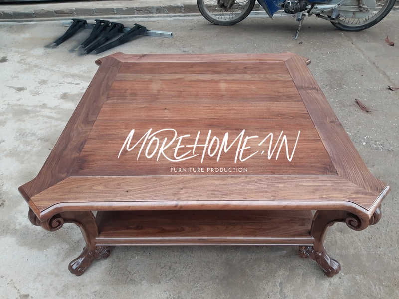 Bàn trà gỗ óc chó tân cổ điển được thiết kế với tỉ mỉ từng chi tiết, các đường cong mềm mại uyển chuyển góp phần tạo nên sự sang trọng và cao cả về tính thẩm mỹ cho không gian.